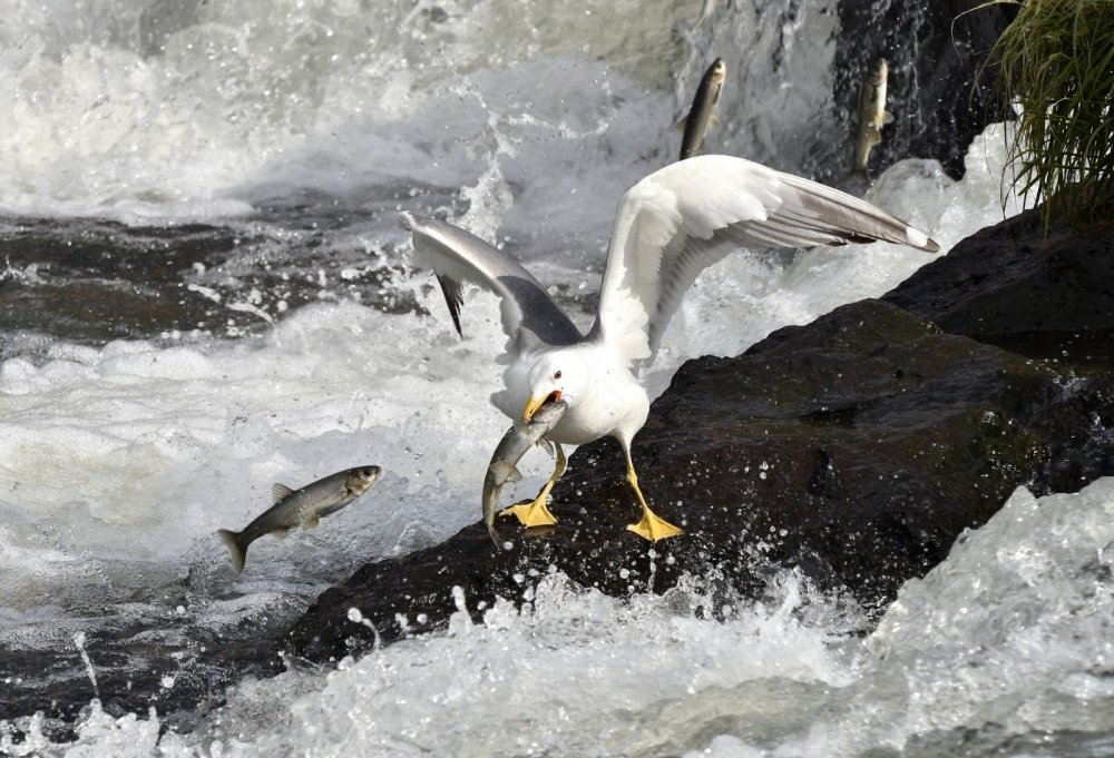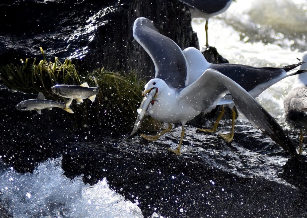 Van Gölü'nde yaşayan inci kefali, suyun tersine yüzerek tatlı sulara göçü sırasında martılarla da mücadele etmek zorunda kalıyor.