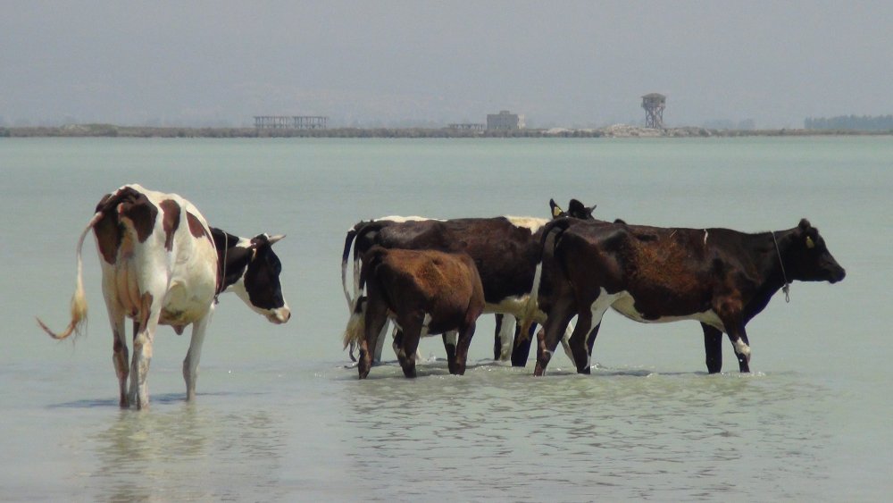 Mersin’in Silifke ilçesinde hava sıcaklıklarının artmasıyla kuş cenneti civarında otlayan inekler, göle girerek, Taşucu sahilinde ise tatilciler denize girerek serinliyor.