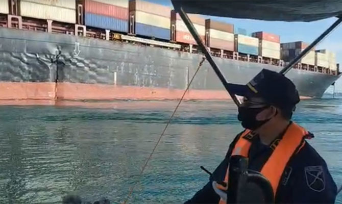 12 Mayıs tarihi itibariyle karaya oturdu ve mevcut en son fotoğraflardan yola çıkarak, gemi orta bölgesi ortadan ikiye doğru kırılmış gibi görünüyor, gövdedeki kırık hem borda yüzeyinde hem de suyun altında kalıyor.