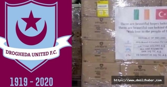Armasında ay-yıldız bulunan Drogheda United'ın Twitter sayfasında Türkiye'den gönderilen malzemelerin fotoğrafıyla beraber bir not paylaşıldı.