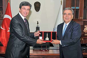 Ersin Özince başkanlığındaki Türkiye Bankalar Birliği Yönetim Kurulu, İzmir Büyükşehir Belediye Başkanı Aziz Kocaoğlu'nu makamında ziyaret etti. İzmir'de altyapı yatırımları ve bankacılık sektörünün daha da gelişeceğine inandığını dile getiren Özince, "İzmir'in ticari hayata bakışı bize çok mutlu ediyor. Türkiye Cumhuriyeti'nin temelinin bu kentte atılmış olması ve Türkiye'nin ilk ticaret borsasından sonra Vadeli İşlemler Borsası'nı da açmış olması önemlidir" dedi. Özince, sözlerini şöyle sürdürdü: "İzmir, bugün mevduatı kadar kredi kullanmayan kentlerdendir. Üstüne rahatlıkla çıkabilir. Burada ticarethaneler açmaya devam edeceğiz."