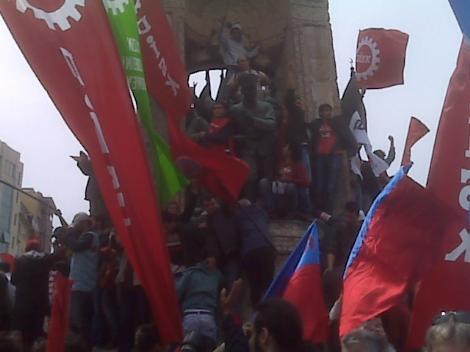 DİSK Genel Merkezi önünde toplanan kalabalık grup, Pangaltı'ya doğru yürüyüşe geçti. Burada yapılan görüşmeler sonucunda kalabalığı "makul" bulan polis, Taksim'e yürüşe izin verdi.
