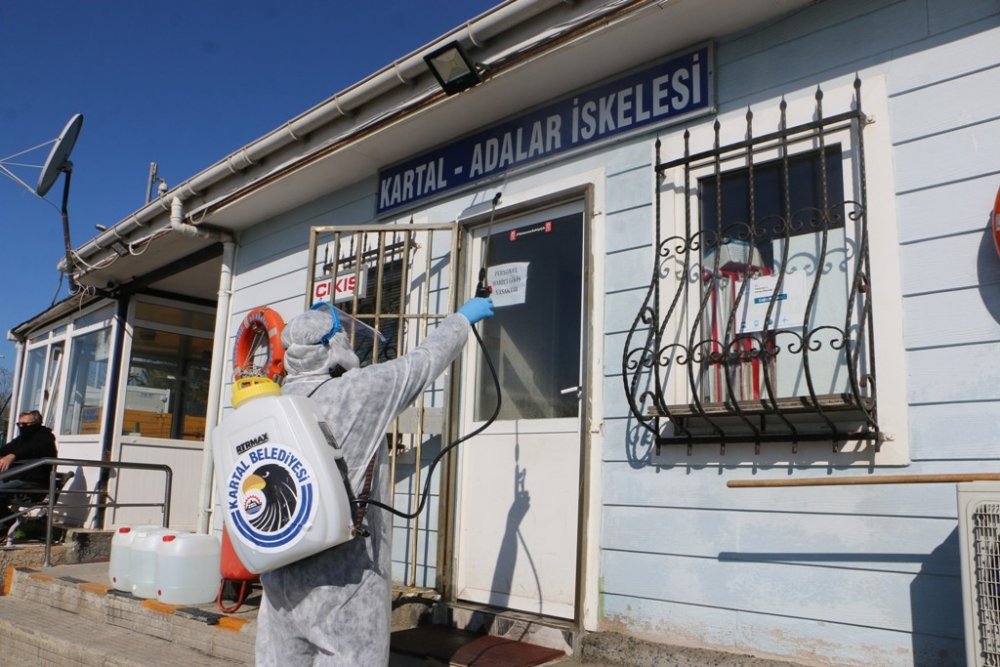 Kartal Belediyesi, tüm dünyayı sarsan Korona virüsüne karşı ilçedeki dezenfekte çalışmalarını aralıksız sürdürüyor. Son olarak Kartal-Adalar İskelesi ve tüm deniz ulaşım araçları da belediye ekiplerinin hummalı çalışmaları kapsamında dezenfekte edildi.