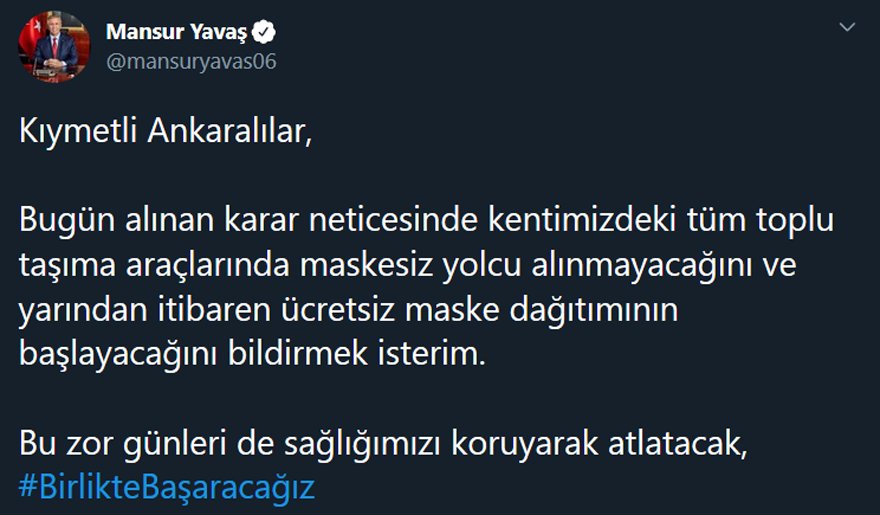 *İBB olarak aldığımız karar gereği yarın metro, metrobüs ve şehir hatları vapurlarımızda 100 bin adet maske vatandaşlarımıza ücretsiz olarak dağıtılacaktır.