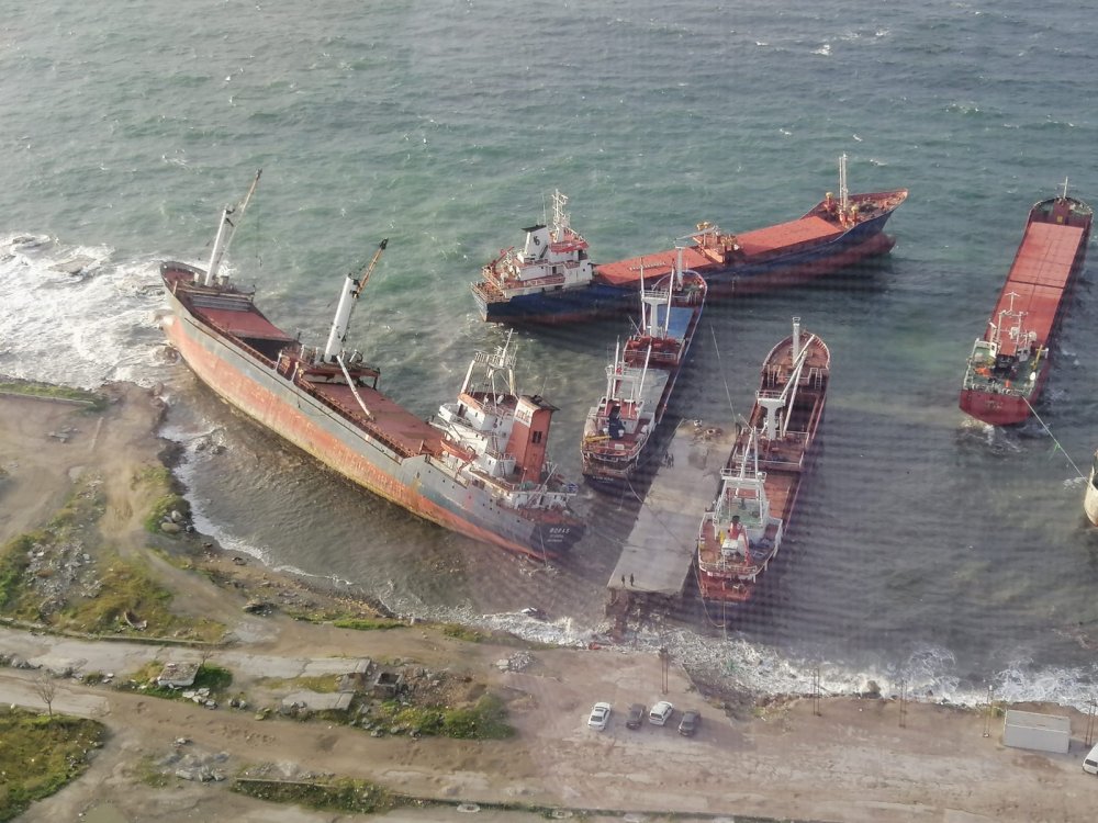 Marmara'da denize ve rüzgara açık yerlerde hacizli, sahipsiz gemiler fırtınanın şiddeti ile sahile sürüklendi.