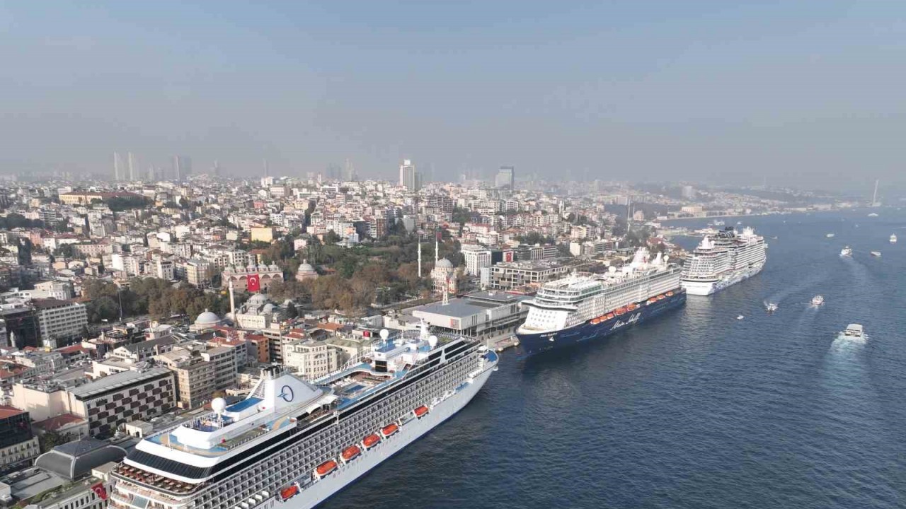 Turizme önemli katkıda bulunan kruvaziyer gemilerinden 4 tanesi İstanbul’da, aynı limanda görüntülendi. Galataport ve Sarayburnu Limanına yanaşan dev gemiler binalardan yüksek boyutları ile görenlerin dikkatini üzerine çekti. Gemilerin sayesinde şehrin turizm hareketliliği de arttı. Adeta yüzen şehirleri andıran dev gemilerin büyüklüğü havadan çekilen görüntülerle net bir şekilde ortaya çıktı. İstanbul’da ilk kez bu kadar yoğun yolcu gemileri aynı anda limanlara bağlı görüntülendi. Galataport’a yanaşan gemilerden 300 metre uzunluğa sahip Norwegıan vıva isimli dev yolcu gemisi 40 metre yüksekliği ile binaların yüksekliğini aşıyor. Mein Schiff 5 isimli 295 metre uzunluğa ve 36 metre yüksekliği ile görenlerin dikkatlerini üzerine çekiyor. Ms Marına 238 metre uzunlukta ve 32 metre yükseklikte olan gemi terasta bulunan havuzu ve katlar arasındaki su kaydırağı özelliği ile ön plana çıkıyor. Sarayburnu Limanına demirleyen 193 metre uzunluktaki Astoria Grande’nin ise 27 metre yüksekliğe sahip olduğu öğrenildi.