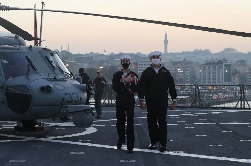 ABD donanması 6. Filosu'nun amiral gemisi LCC 20 Borda numaralı USS Mount Whitney, 1 Kasım akşamı Sarayburnu Limanı'na demirlemişti. Savaş gemisi bugün İstanbul'dan Karadeniz'e hareket ediyor.