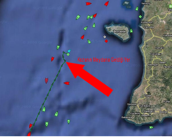 Her iki geminin kazadan önce ve sonraki rota izleri...
