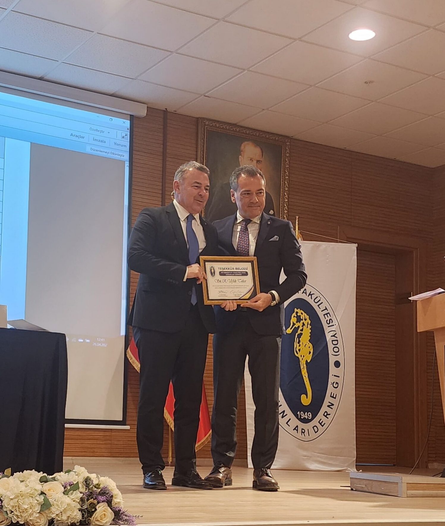 Daha sonra İTÜ Denizcilik Fakültesi Dekanı Prof. Dr. Özcan Arslan, Teker ile beraber yönetimden ayrılan Kapt.Kayhan Aytuğ, Kapt.Murat Volkan, Kapt.Süleyman Erşenler, Kapt.Dilruba Duygu Söylemez’e plaket verdi.