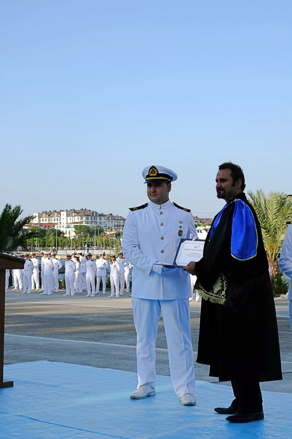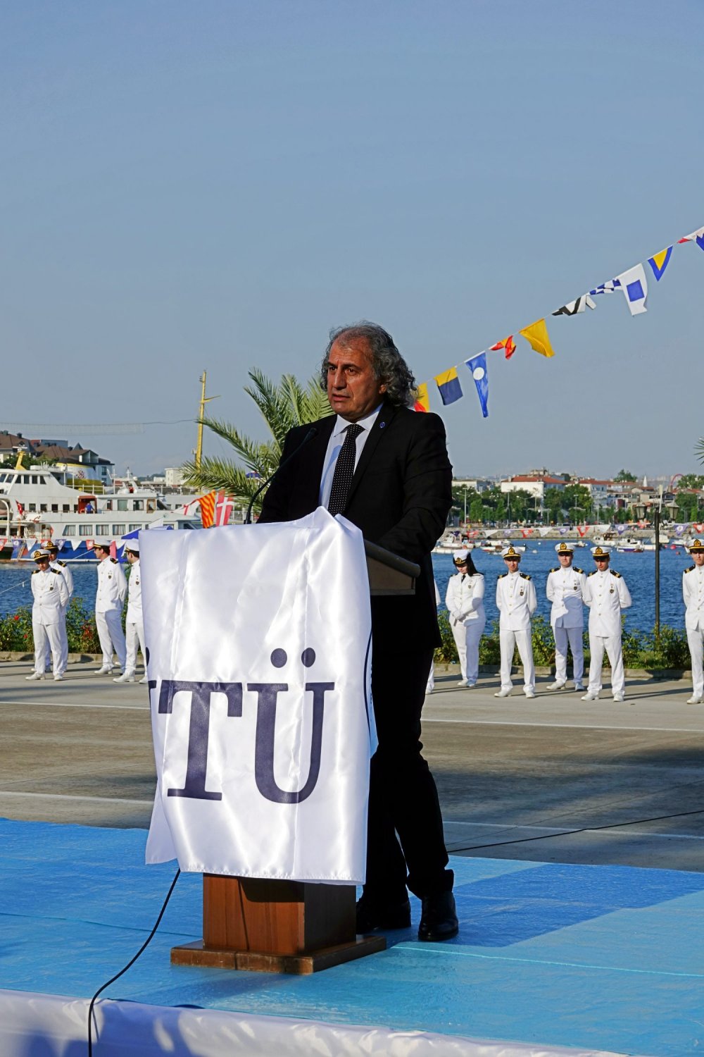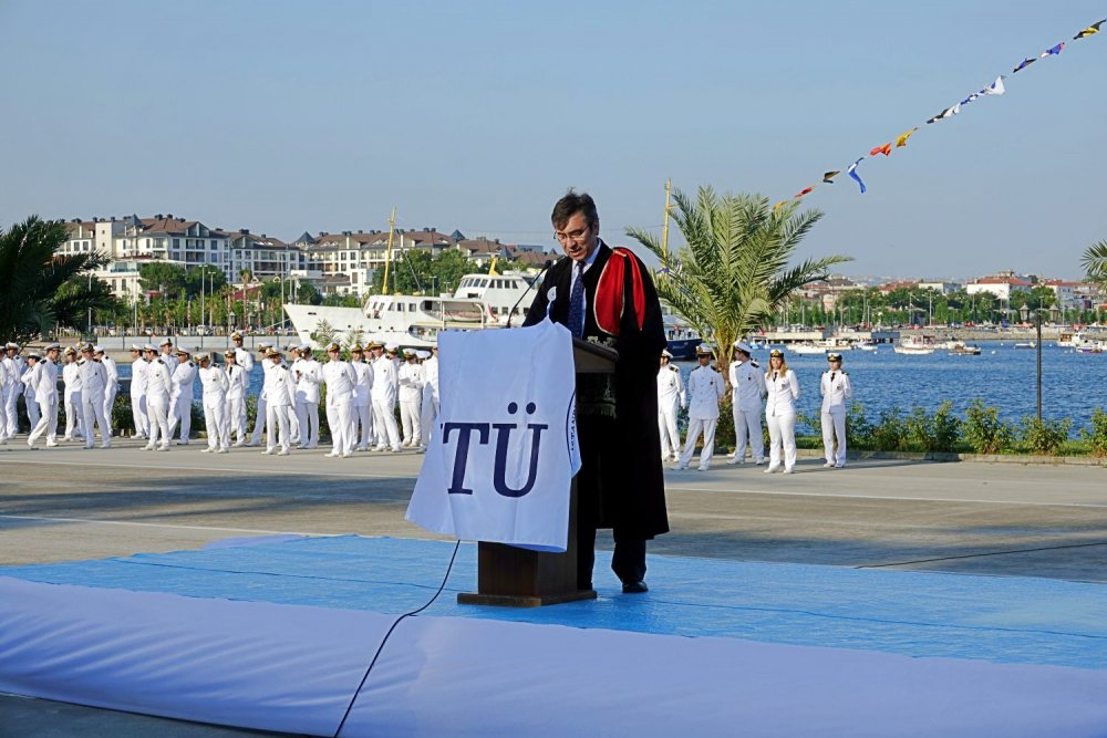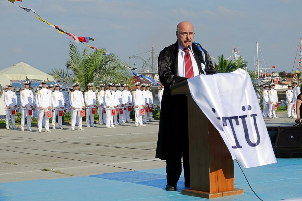"Sizleri, hayattaki en hakiki dayanağın ilim ve fen olduğunu benimseyip kararlarınızı analitik düşünce süzgecinden geçirerek almayı öğrendiğiniz bu ocaktan, Türkiye Cumhuriyeti'nin, Atatürk ilke ve inkılaplarına bağlı, lider vasıflı, çevreye duyarlı, yüksek etik değerlere sahip denizciler olarak yeni dünyalara yelken açmak üzere uğurluyoruz. Bir denizci özdeyişinde ifadesini bulduğu üzere, 'Bir omurga, bir gövde, bir güverte ve yelkenler değildir, bir gemi. Bunlar geminin ihtiyaç duyduklarıdır. Bir gemi gerçekte özgürlüktür.' Bu gemide denize çıkacak fikri hür, vicdanı hür ve irfanı hür tüm denizcilere Allah selamet versin."