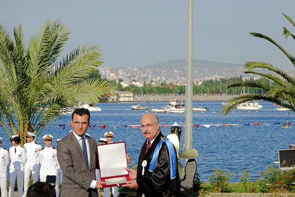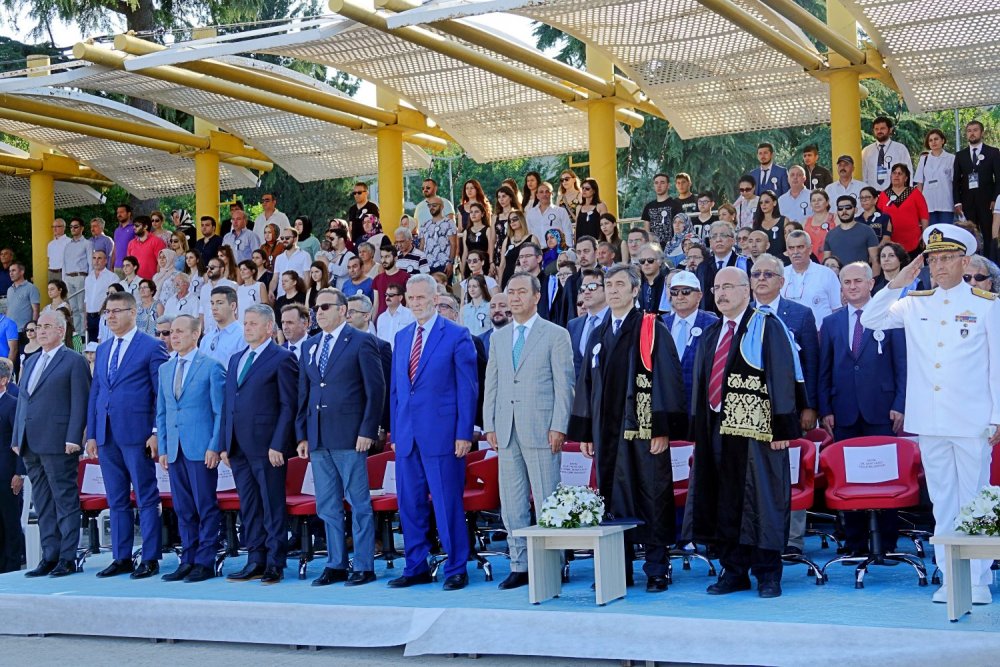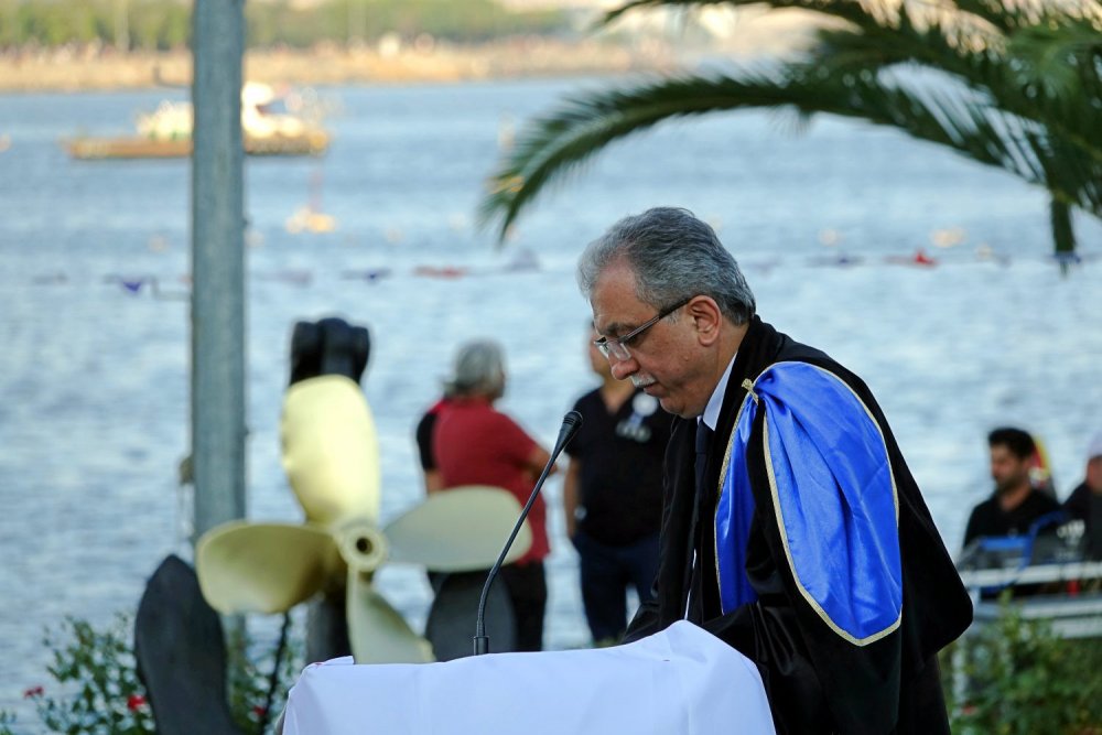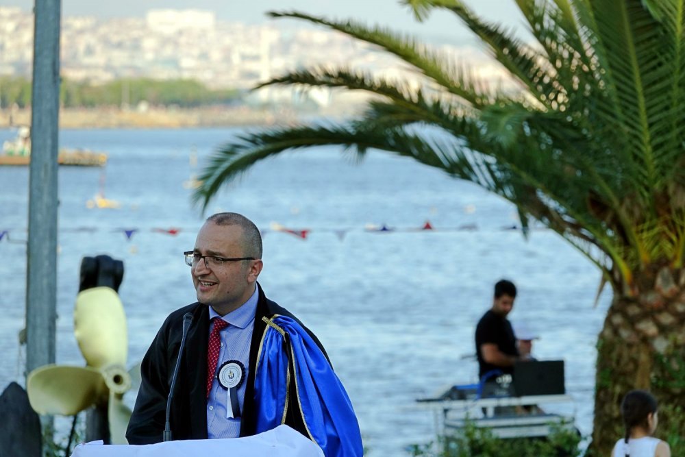 "Sizleri, hayattaki en hakiki dayanağın ilim ve fen olduğunu benimseyip kararlarınızı analitik düşünce süzgecinden geçirerek almayı öğrendiğiniz bu ocaktan, Türkiye Cumhuriyeti'nin, Atatürk ilke ve inkılaplarına bağlı, lider vasıflı, çevreye duyarlı, yüksek etik değerlere sahip denizciler olarak yeni dünyalara yelken açmak üzere uğurluyoruz. Bir denizci özdeyişinde ifadesini bulduğu üzere, 'Bir omurga, bir gövde, bir güverte ve yelkenler değildir, bir gemi. Bunlar geminin ihtiyaç duyduklarıdır. Bir gemi gerçekte özgürlüktür.' Bu gemide denize çıkacak fikri hür, vicdanı hür ve irfanı hür tüm denizcilere Allah selamet versin."