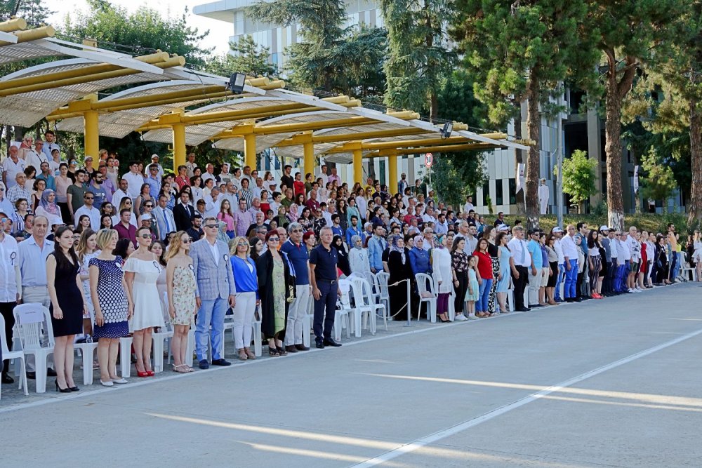 Üniversitenin Tuzla Yerleşkesi'nde gerçekleşen törende, 2017-2018 Akademik Yılı'nı başarıyla tamamlayarak mezun olan öğrenciler, diploma almanın sevincini yaşadı.