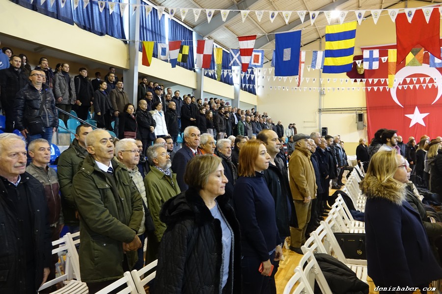 Ruhi Sarıalp Kapalı Spor Salonu’ndaki gerçekleştirilen törende ilk olarak Ulu Önder Mustafa Kemal Atatürk ve deniz şehitleri ile saygı duruşunda bulunuldu ve İstiklal Marşı okundu.
