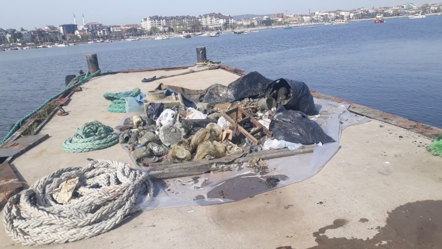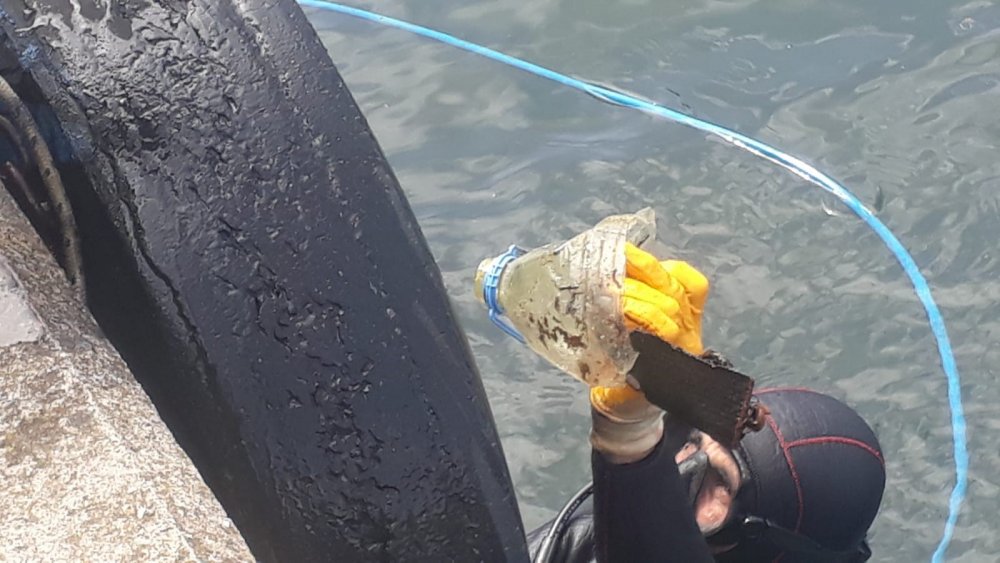 Çevre kirliliğe karşı duyarlılık oluşturmak amacıyla gerçekleştirilen kıyı ve su altı temizliği etkinliğinde, eko sistemi ve deniz yaşamını olumsuz etkileyen katı atıklar temizlenerek sergilendi.