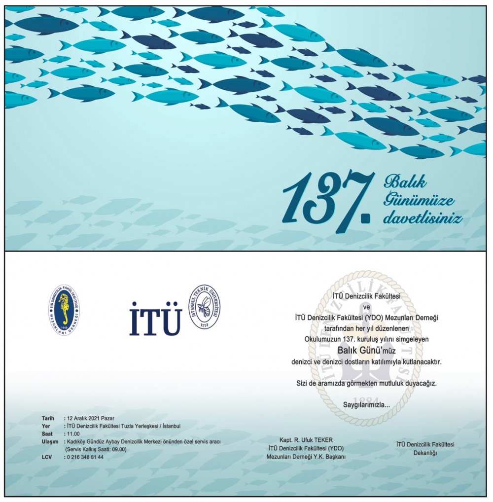 İTÜ Denizcilik Fakültesi (YDO) Mezunları Derneği ve İTÜ Denizcilik Fakültesi işbirliği ile her yıl geleneksel olarak düzenlenen Balık Günü, bu sene 12 Aralık 2021 tarihinde yine İTÜ Denizcilik Fakültesi Tuzla Yerleşkesi’nde gerçekleştirilecek.