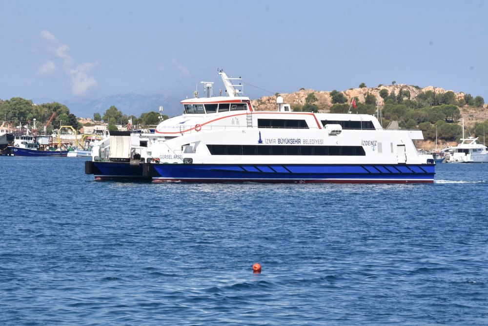 İzmir, Üçkuyular İskeleden hareket eden İzmir Büyükşehir Belediyesi İZDENİZ Gürsel Aksel gemisinin ilk sefer yolcularını ve Kaptan Hamit Doğruöz’ü, Foça İskelede Belediye Başkan Yardımcısı Göksel Acar ve Foça Liman Başkanı Vekili Levent Karalom karşıladı.