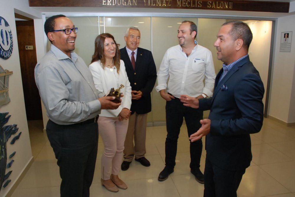 İMEAK DTO İzmir Şubesi Yönetim Kurulu Başkan Yardımcısı Savaş Ercan, Meclis Üyesi Mehmet Aksoy, Şube Müdürü Halil Hatipoğlu, Güney Afrika Cumhuriyeti Ankara Büyükelçisi Yetkilisi Sultan Onacak, Su Ürünleri Mühendisi Semih Salnur’un da katıldığı görüşmede, İzmir Alsancak Limanı ile Cape Town Limanı arasında kardeş liman anlaşması imzalanması da gündeme geldi.