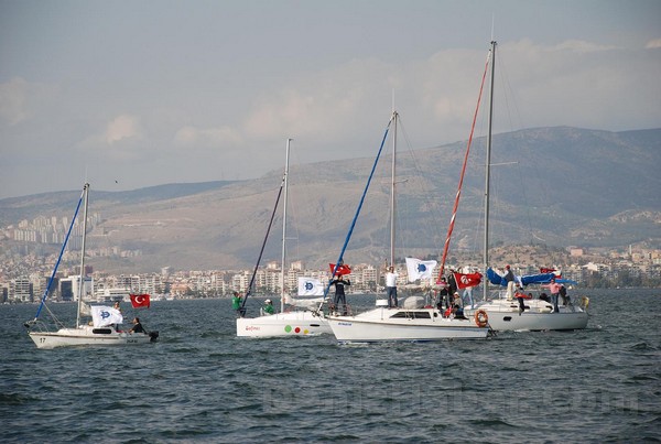 *İzmir İl Emniyet Müdürlüğü Deniz Limanları Şube Müdürlüğü’ne bağlı Polis-5 botu, İzmir Gümrük ve Muhafaza Başmüdürlüğü Kaçak İstihbarat Gümrük Muhafaza Müdürlüğü Cumhuriyet Botu, Türkiye Denizcilik İşletmeleri İzmir İşletmesi Müdürlüğü’ne bağlı Pilot-66 botu, İzmir Tarım İl Müdürlüğü’ne bağlı Yalıçapkını teknesi, TURYOL’a bağlı Kırçıloğlu 2 yolcu motoru, protokolü selamlayarak resmigeçit yaptı.
