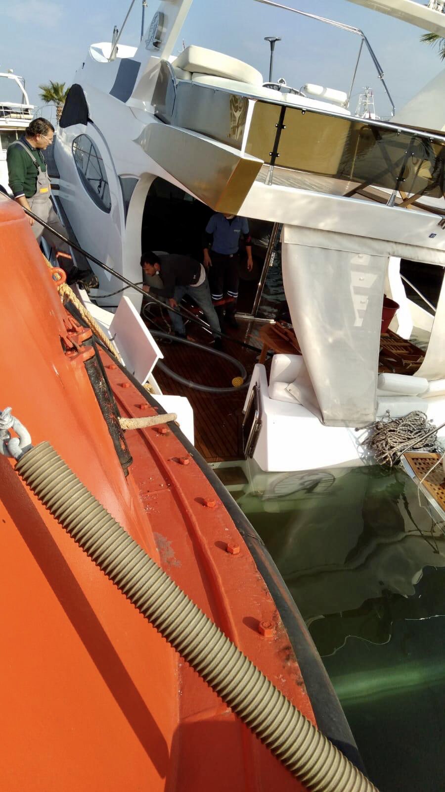 İzmir İnciraltı mevkiinde topuğa oturup su alan ve içinde 3 kişi bulunan tekne KEGM'e ait GARP Römorkörü tarafından yedeklenerek Levent Marina’ya çekildi.