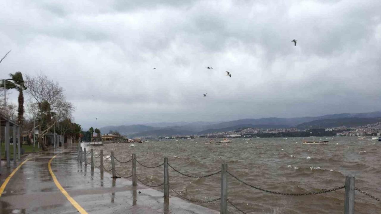 İzmit Körfezi’nde etkili olan fırtına sebebiyle dalgalar kıyıya vurdu, balıkçı tekneleri beşik gibi sallandı.