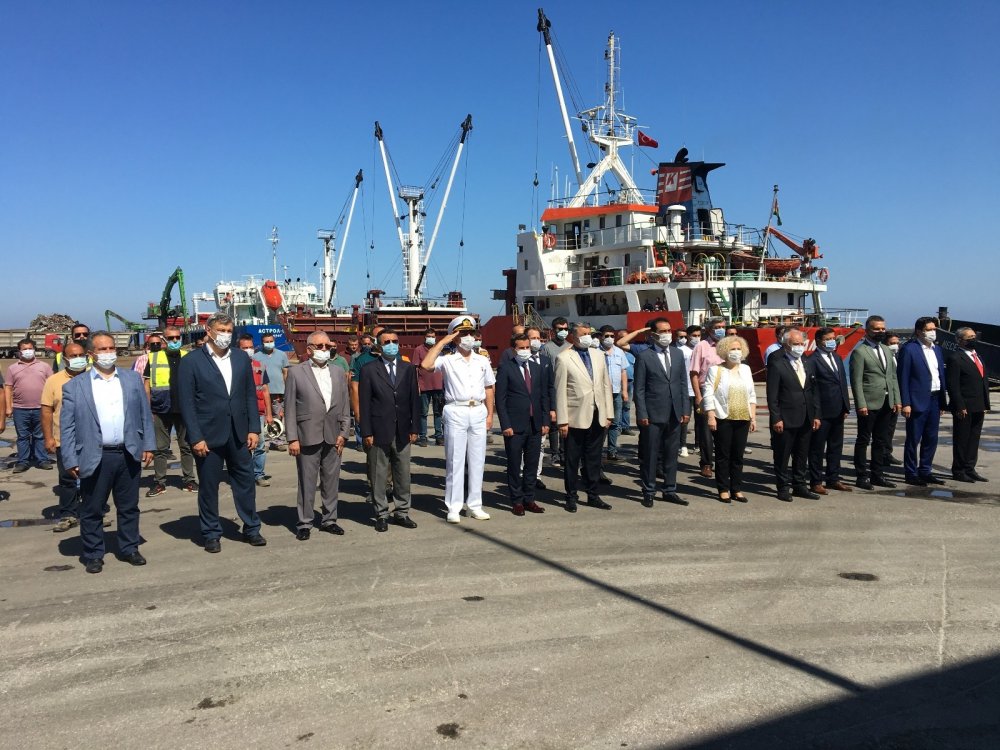 Bartın Limanındaki tören saygı duruşu ve İstiklal Marşı ile başladı.