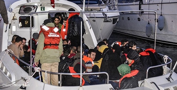 24'ü Pakistan, 11'i ise Myanmar uyruklu kaçaklar, Altınova sahili açıklarında şişme bir botta yakalandı.