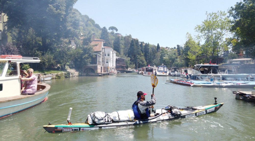 Kız çocuklarının eğitimi için Türkiye'nin denizlerini kano ile geçmeyi hedefleyen Şenol Özdemir, Hatay'da tamamlayacağı deniz yolculuğu sırasında Beykoz'da mola verdi.