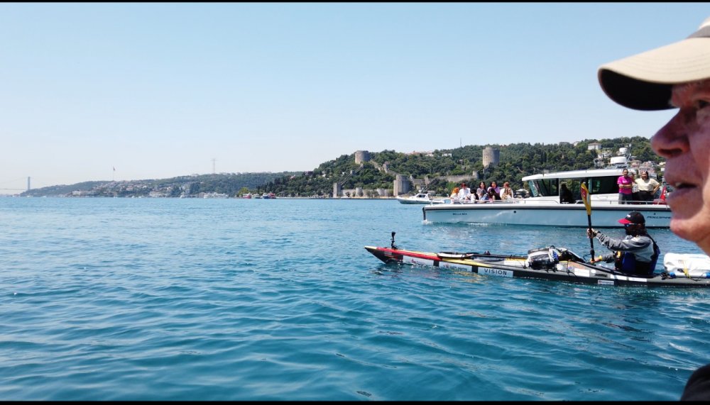 Beykoz’dan Anadolu Hisarı’na kadar Şenol Özdemir’e Ali Ertan Güney kanosu ile eşlik ederek 'boğazın sularına hoş geldin' dedi.