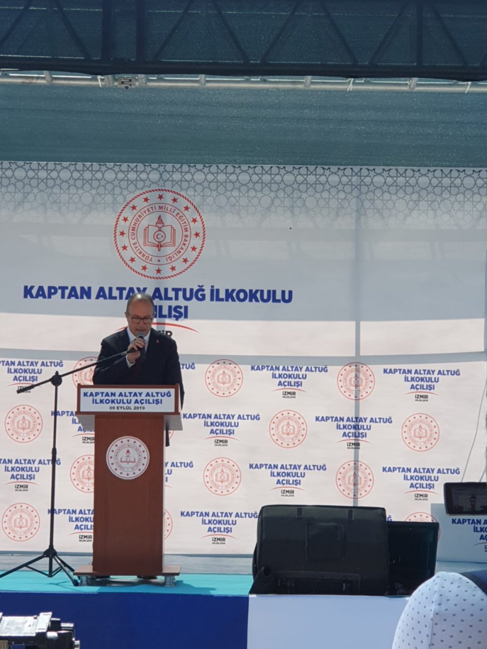Açılışta bir konuşma yapan UZMAR Grup CEO’su Müh. Noyan Altuğ, “Sevgili babamız Kaptan Altay Altuğ’a, Karşıyaka’mıza bu modern ilkokulu armağan etme hayalini gerçekleştirerek, İzmir’in Kurtuluşunu kutladığımız bu tarihte, bizleri burada bir araya getirdiği için şükranlarımı sunuyorum” dedi.