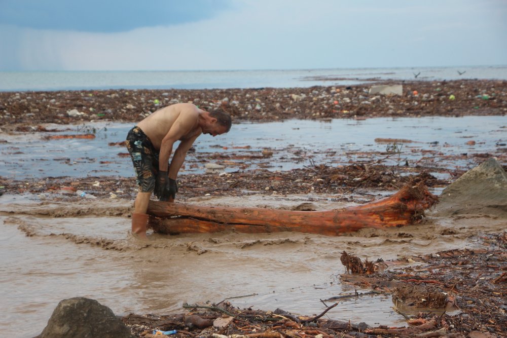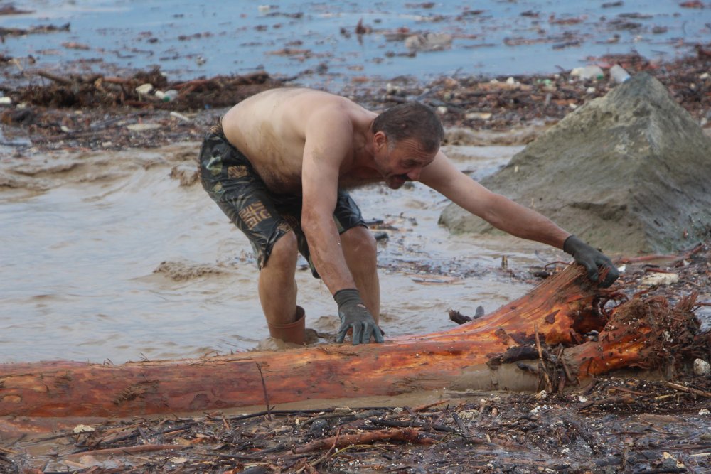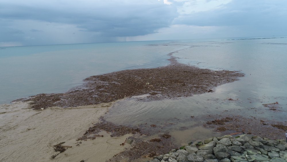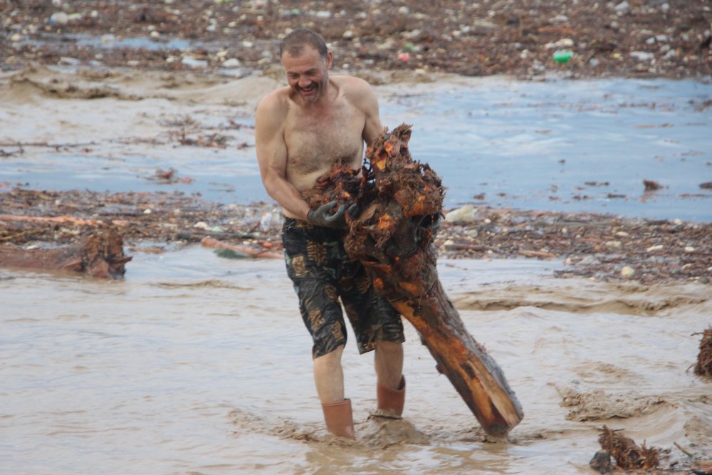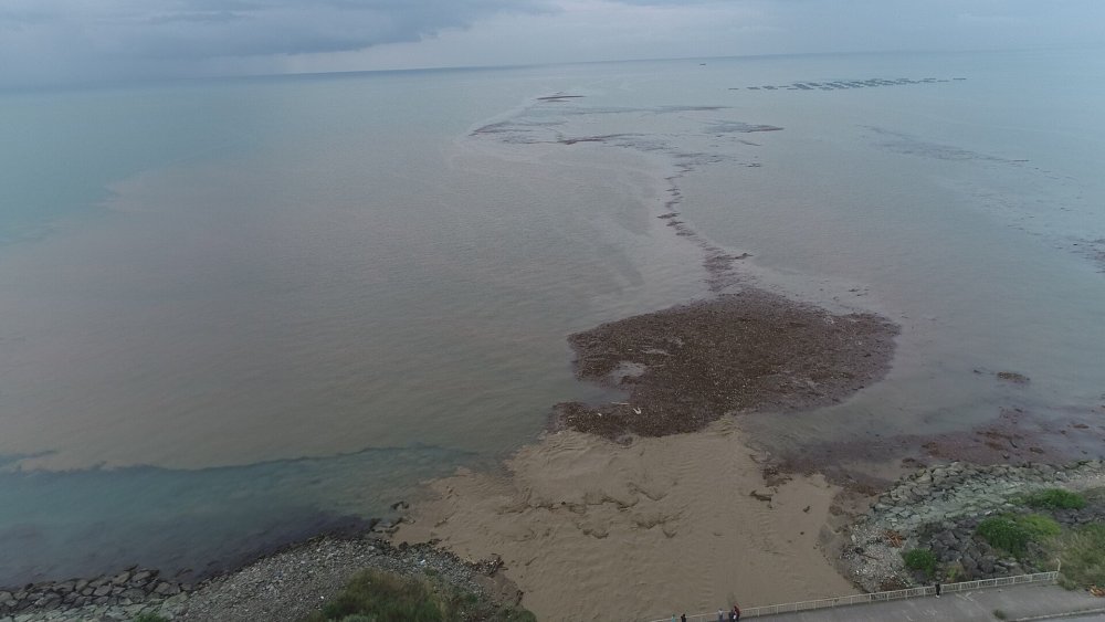 Karadeniz çamura bulandı, derelerin getirdiği ağaç parçaları ile doldu