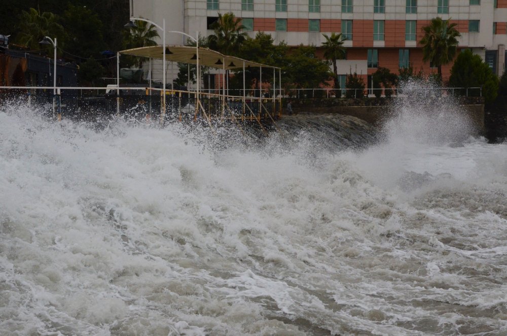 Dün akşam saatlerinden itibaren il genelinde etkili olan yağmur, yüksek kesimlerde kara dönüştü. Sahil kesimlerinde de etkili olan rüzgar ve yağmur yağışı, hayatı kısmen olumsuz etkiledi. Sahilde yürüyüş yapmak isteyen bazı vatandaşlar, rüzgarın etkisiyle dalgaların kıyıya vurması sonrası ıslandı.
