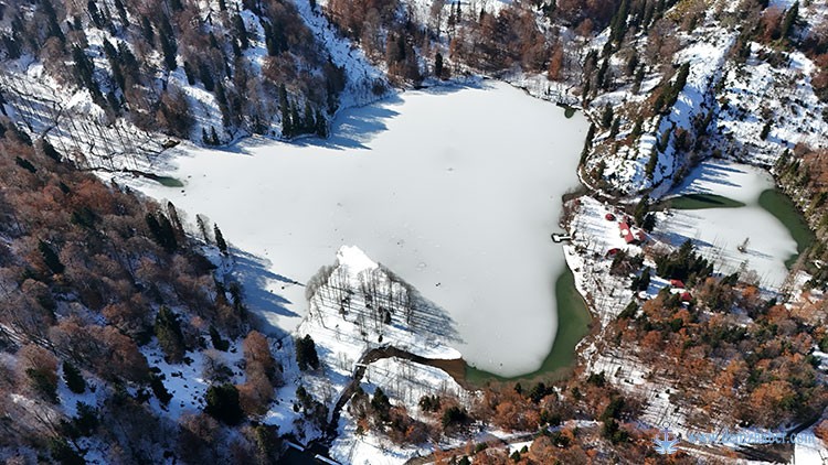 Yeşilin yanı sıra sarı, turuncu, kırmızı ve kahverenginin farklı tonlarını sergileyen tabiat parkındaki güzelliğe, donan göl yüzeyi ve ormanlardaki kar örtüsü eklenince ortaya çıkan görüntü ziyaretçilerin beğenisini artırıyor.
