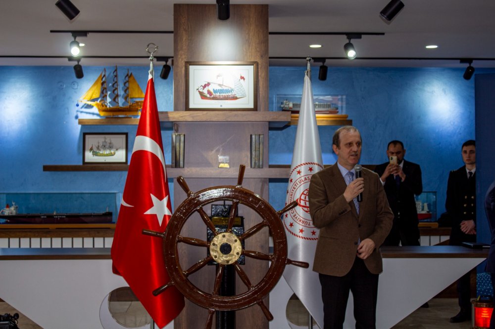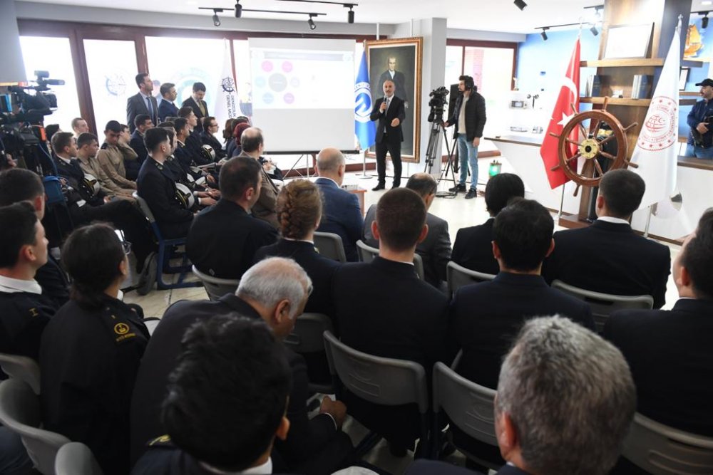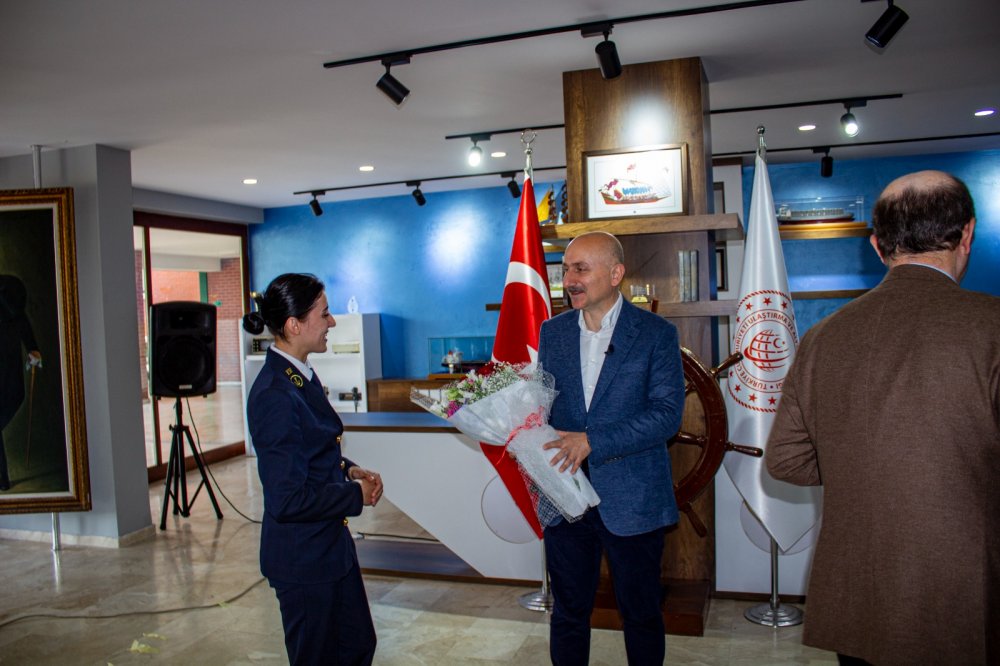 Ulaştırma ve Altyapı Bakanı Adil KARAİSMAİLOĞLU mezun olduğu üniversiteye 30 yıl sonra bugün tekrar gelmenin ve öğrenciler ile bir arada olmanın mutluluğunu yaşadığını belirterek başladığı konuşmasında denizyolu, karayolu, havayolu ve demiryolu ticaretinin öneminden ve ülkemizin yatırımlarından bahsetti. Sn. KARAİSMAİLOĞLU dünya ticaretinin %90'ının deniz yolu ile yapıldığını dile getirerek deniz ticaretinin önemini vurguladı. Barbaros Hayrettin Paşa’nın ‘Denizlere hâkim olan cihana hâkim olur’ sözü ışığında Türkiye Cumhuriyeti olarak "Mavi Vatan" kavramına sahip çıkıldığını ve bunun devam etmesi için geleceğin denizcilerine büyük bir sorumluluk düştüğünü dile getirdi. Konuşmalarından sonra; Sn. KARAİSMAİLOĞLU ve Sn. BAYLAN öğrencilerden gelen soruları cevapladı.