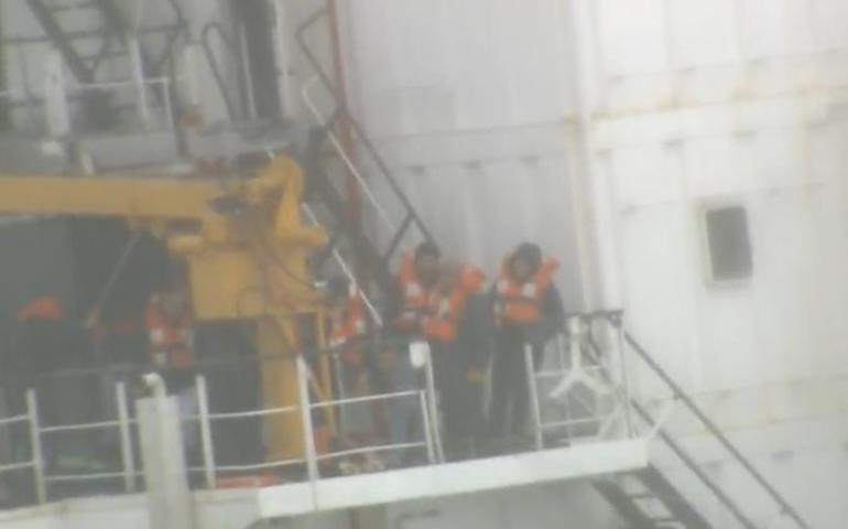 Karaya oturan gemideki mürettebat böyle tahliye ediliyor