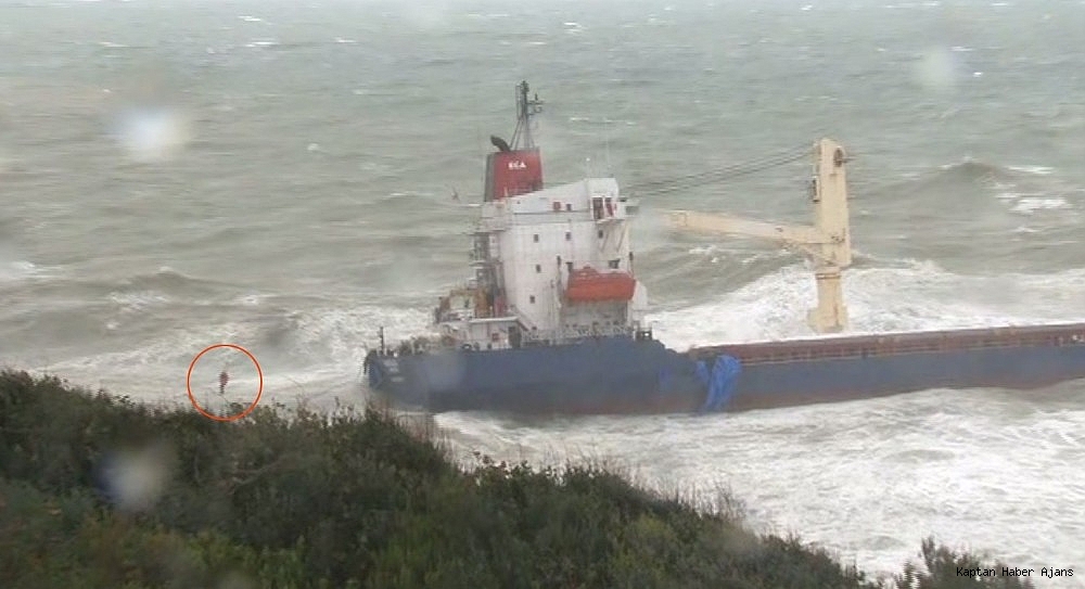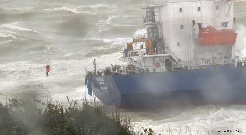 Bu sabah saatlerinde Şile açıklarında karaya oturan gemiden kurtarma ekiplerinin mürettebatı tahliye etme çalışması başladı.