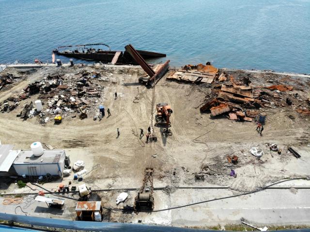 Özel bir şirket tarafında parçalama işlemi devam eden geminin büyük bir bölümü parçalandı. İşçilerin devam eden çalışması ve geminin son hali ise havadan görüntülendi.