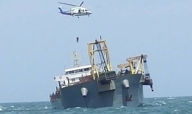 Bu yüzden mürettebat helikopterle kurtarıldı.