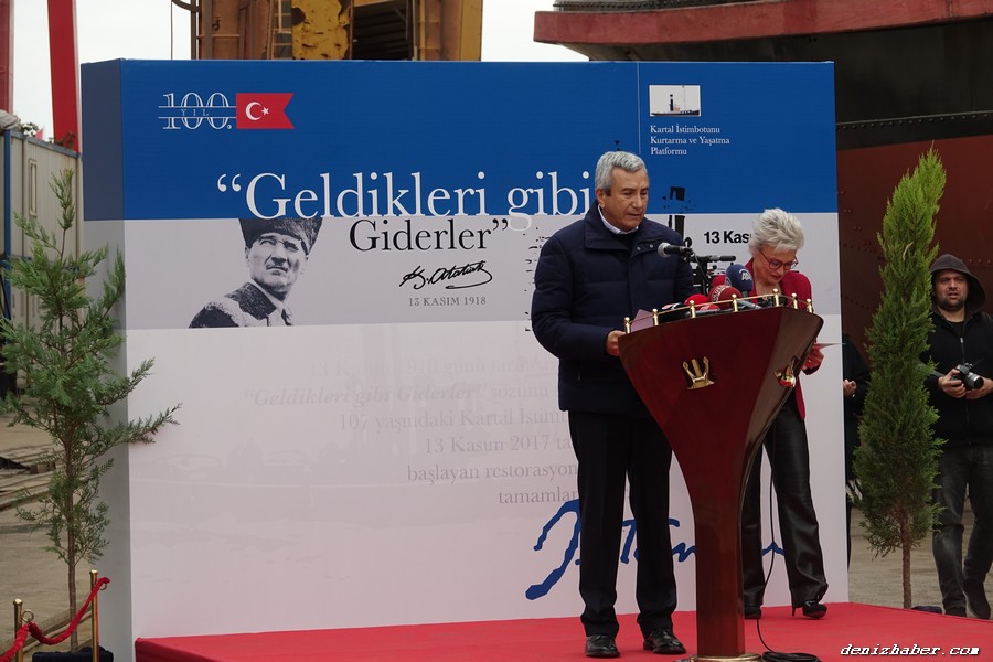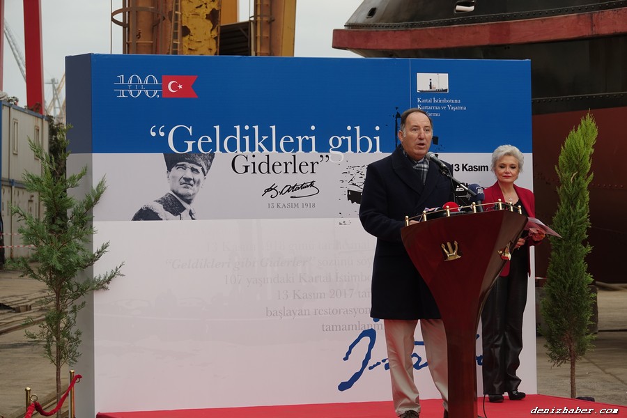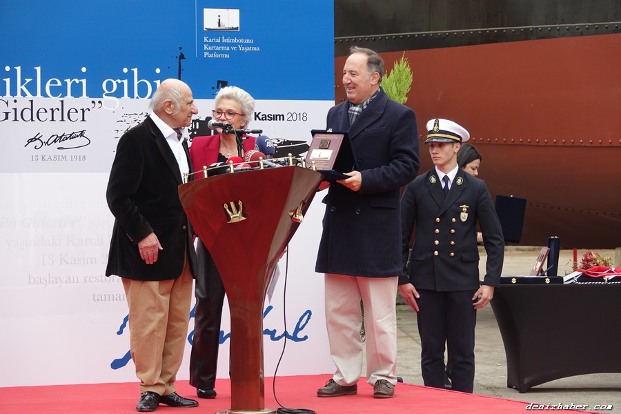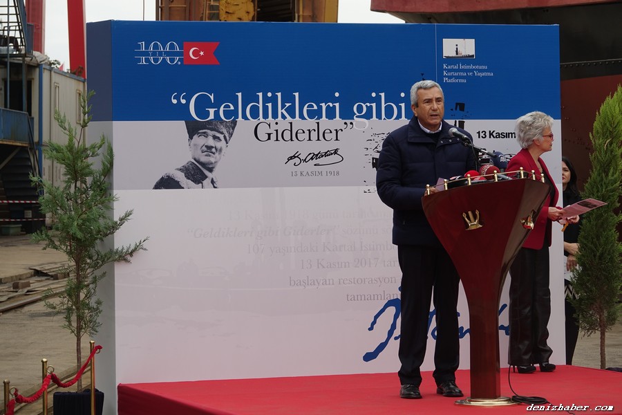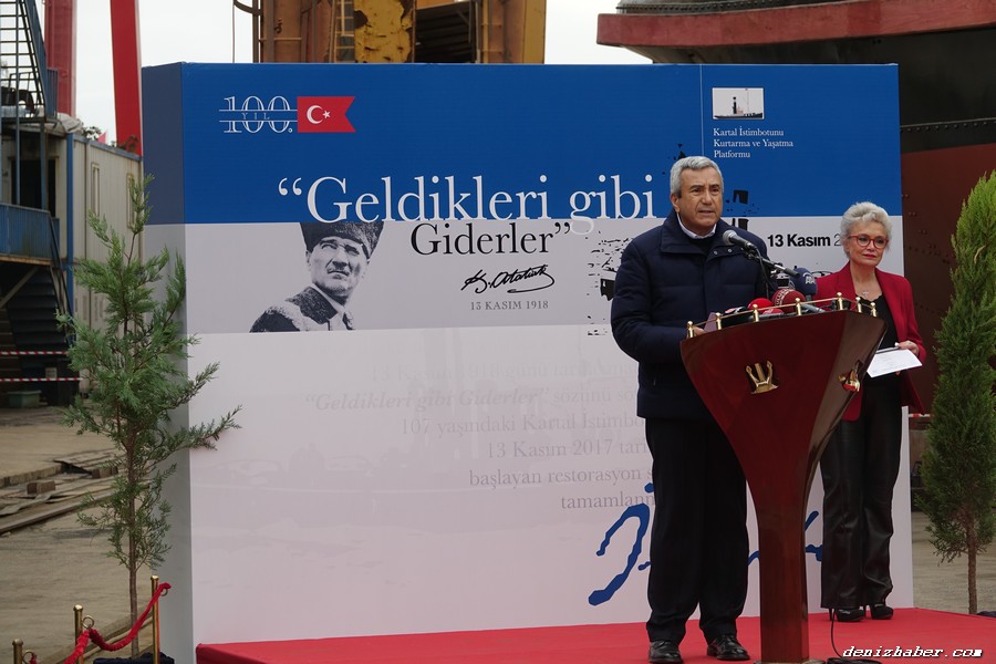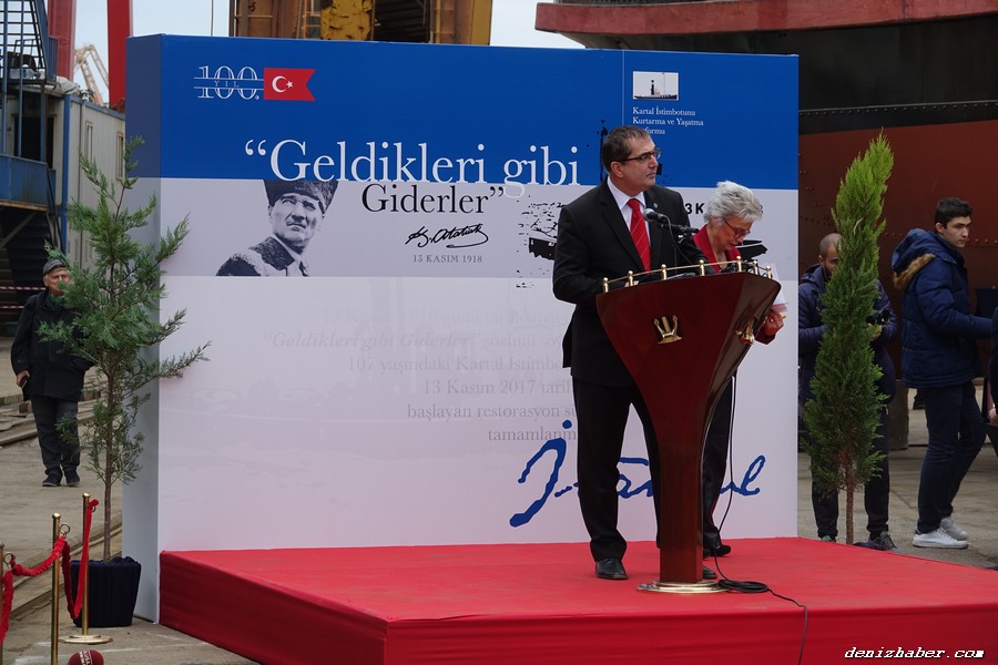 Tuzla Çiçek Tersanesinde düzenlenen törene Kuzey Deniz Saha Komutanı Tümamiral Tayyar Ertem, Kartal İstimbotu Kurtarma ve Yaşatma Platformu Başkanı Amiral Cem Gürdeniz ve davetliler katıldı. Törende konuşan Gürdeniz, "Bu geminin direği Türk milletinin egemenlik iradesini, pervanesi Türk milletin karanlıktan kurtuluş azmini, dümeni aydınlanma rotasında ilerleme istencini, demirleri her şartta sabırla mücadele yeteneğini, İstiklal Marşı ile toka edeceğimiz Türk bayrağı şehitlerimizin kanından gökyüzüne yükselen bağımsızlık ateşini ve 'geldikleri gibi giderler!' sözünün bulduğu anlamı temsil eder." ifadelerini kullandı.