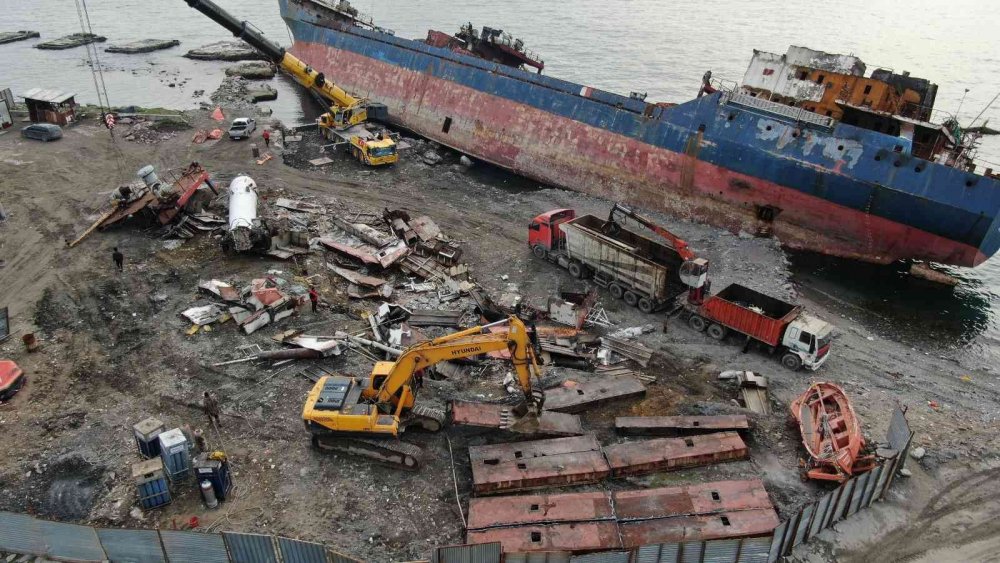 Parçalara ayrılan Boras isimli gemi drone ile havadan görüntülendi.