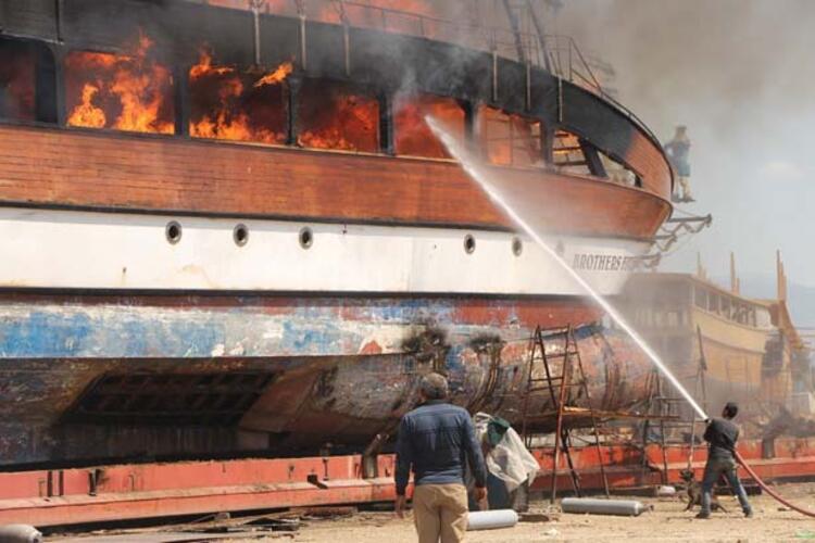 Yaklaşık 2 ay önce bakım için kum mevkiinde bulunan çekek yerine çekilen Alanya’da turist taşıyan Abdullah Arslan’a ait 24 metrelik 'Brothers Five Nordic' isimli yolcu katamaranında yangın çıktı.