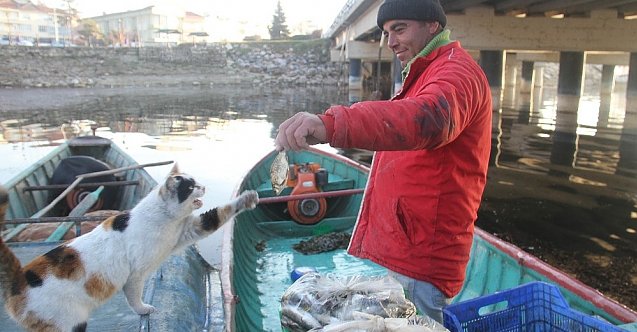 Beyşehir Gölü'nden tatlı su balığı avı yaparak geçimini sağlayan balıkçılar, kış şartlarında da faaliyetlerini sürdürüyor. Gündüz saatlerinde göl sularına açılarak ağlarını seren balıkçılar, ertesi gün sabah saatlerinde ise mesailerine kaldıkları yerden devam ederek ağlarına balık takılıp takılmadığını kontrol ediyor. Ağlara takılan balıklar varsa toplanıp kasalara doldurularak satışa sunulmak üzere kıyıya getiriliyor. Limanlarına dönüş yapan balıkçı teknelerini kıyılarda bazı sokak kedileri de dört gözle bekliyor. Balıkçılar, kıyıya yanaştıklarında yollarını gözleyen sokak kedilerine de kısmetleri olan küçük balıkları vererek besliyor. Kediler, motorlu teknelerin üzerine çıkarak avcıların sevip okşayıp elleriyle uzattığı balıkları alarak uzaklaşıyor.