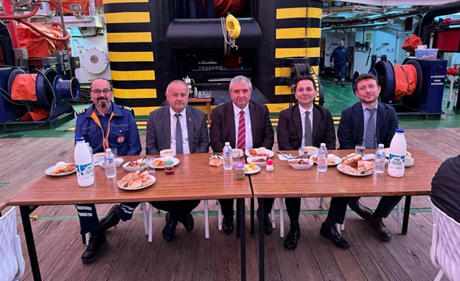 Kıyı Emniyeti Kaptan ve Başmühendisleri Derneği Yönetim Kurulu Başkanı Kapt. Arslan Dede’nin de katıldığı iftar davetinde Nene Hatun gemisinin kaptanı Mustafa Sevinç ve başmühendisi Bahadır İldas ağırladı.