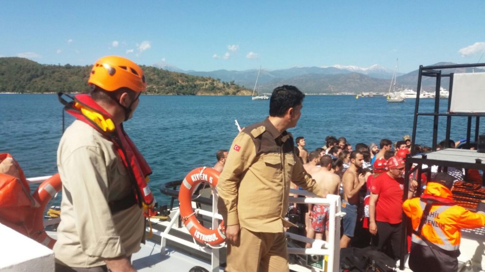 Muğla’nın Fethiye ilçesi açıklarında denizde bir dalış teknesinin battığı yönünde gelen ihbar üzerine dün tüm ekipler seferber oldu. Fethiye Kaymakamı Muzaffer Şahiner bizzat kurtarma botunda çalışmalara katıldı. Teknede Sabancı Üniversitesi Sualtı Sporları ve Araştırmaları Kulübü (SUSS) öğrencisi 71 öğrenci ile teknedeki 7 kişilik mürettebat ile toplam 78 kişinin bulunduğu belirtildi. Tekne battıktan sonra en yakın karaya yüzerek çıkan öğrenciler ve mürettebat kurtarıldı.