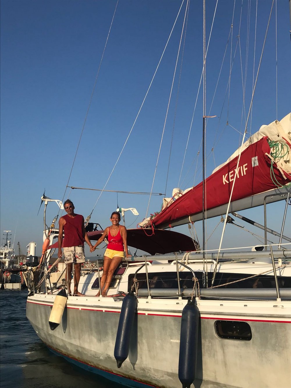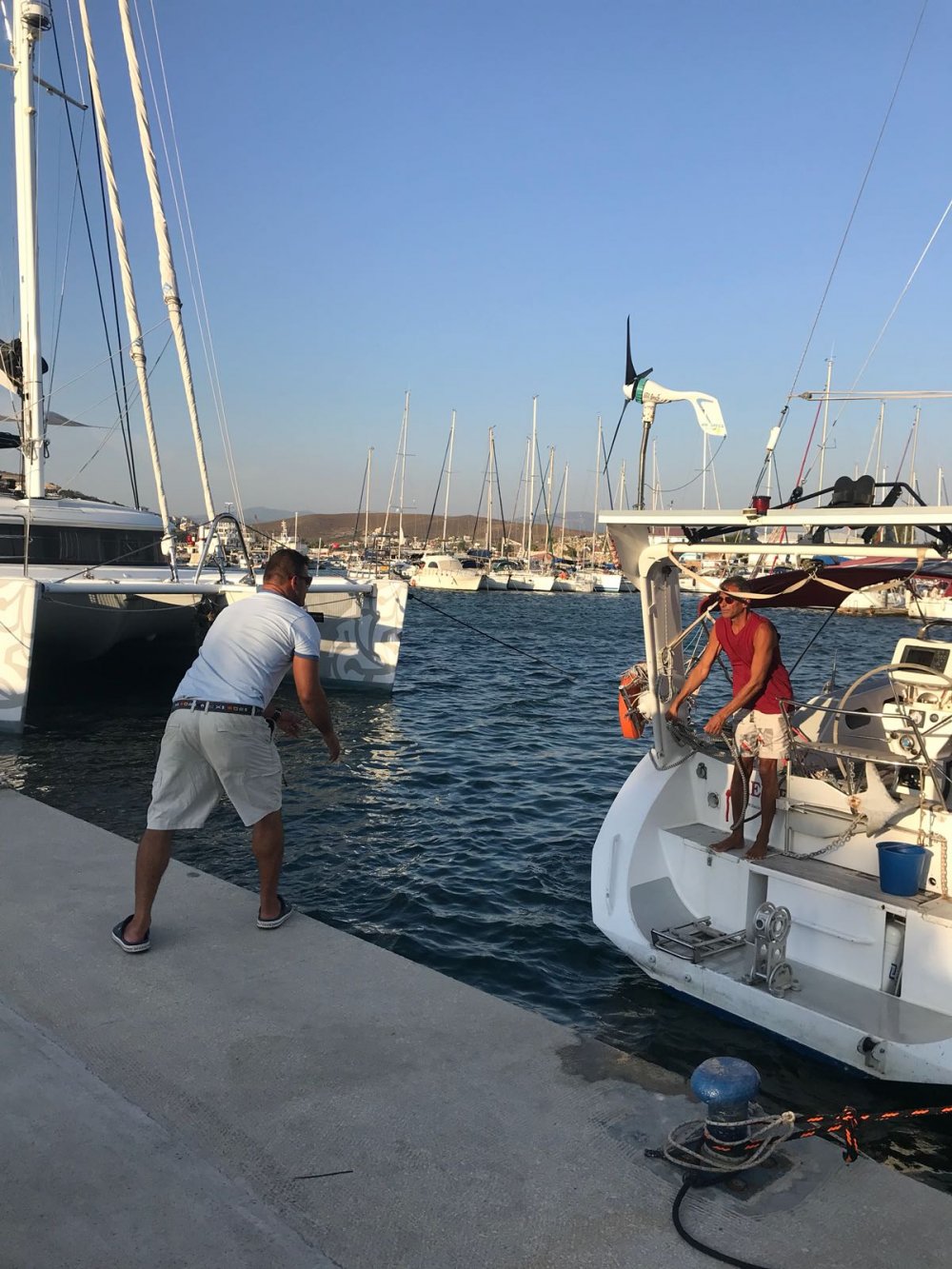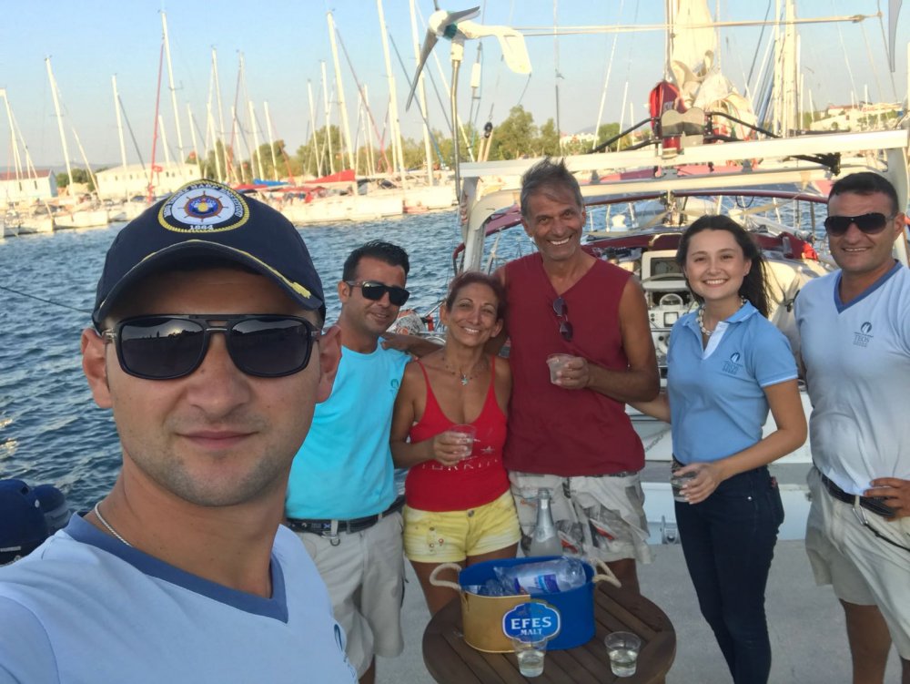 Teos Marina palamarları ve Ön büro Müşteri İlişkileri Uzmanı tarafından şampanya ile karşılanan ikili, 6 yıl süren yelkenle dünya turunun ardından ilk kez Türkiye’ye adım atarken çok duygulandılar. Hedefleri dünyayı geze geze yaşamak, gezegenin her yerindeki kıyıları tanımak olan çift, köklerini de unutmadan, aile ziyareti için zaman zaman Türkiye’ye geliyor. Ancak 6 yıldır ilk defa tekneyle Türkiye’ye geldiler.