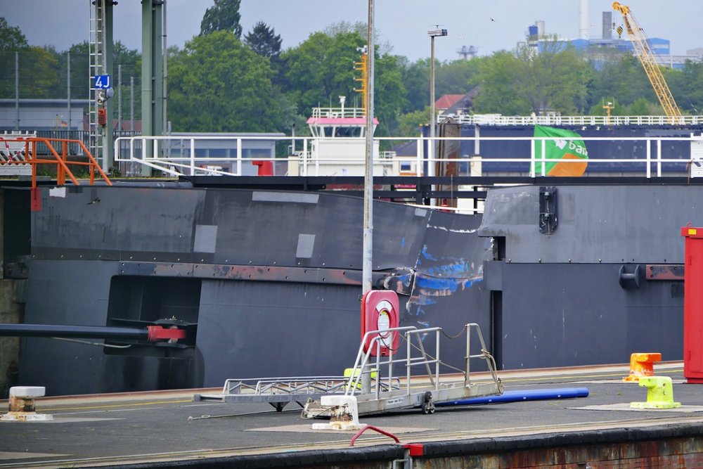 Genel kargo gemisi RIMINI, 17 Mayıs akşamı Brunsbuettel'deki Kiel Kanalı'na girerken kanal havzunun kapağıyla temas etti. Çarpma sonucu gemide ve kapakta hasarlar oluştu.