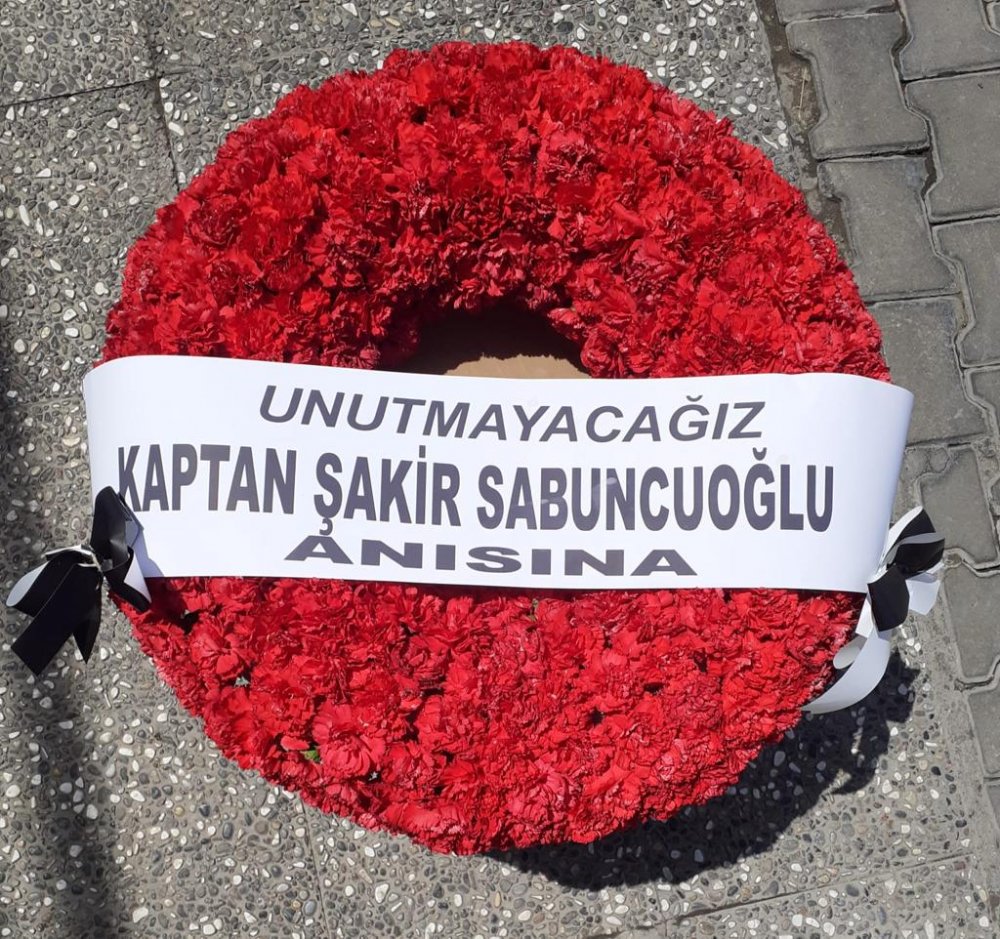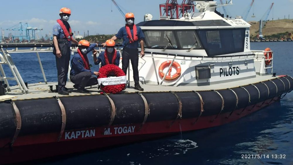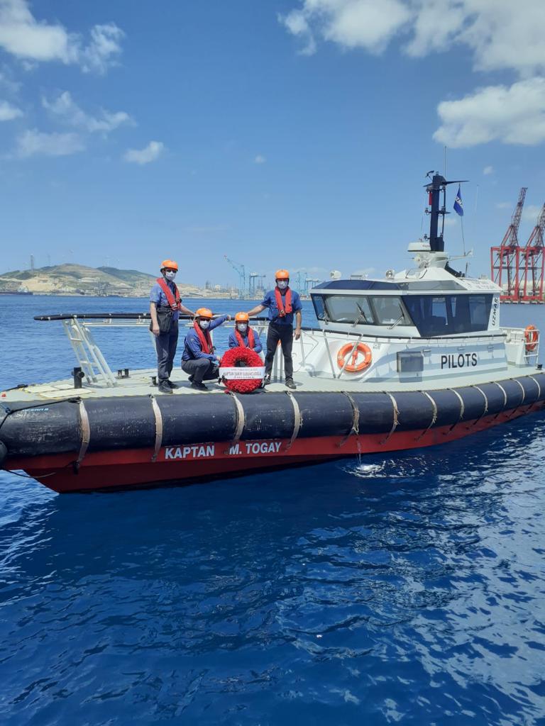 UZMAR Denizcilik'te görev yapan Kılavuz Kaptanlar vefat yıl döneminde Kaptan Şakir Sabuncuoğlu'nu denize çelenk bırakarak andılar.