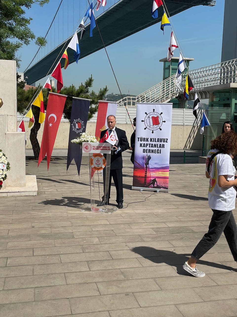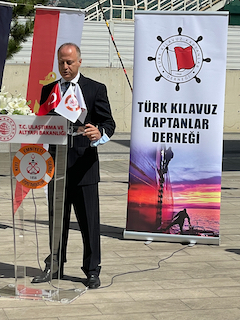 "Bugün burada dünyada kılavuzluğun ruhani evi olarak kabul edilen İstanbul Boğazı kıyısında sizlere seslenirken, ülkemizin diğer limanlarında ve Çanakkale Boğazında da yine üyelerimiz kılavuz kaptanlar, meslek şehitlerimizi anmak üzere bir araya gelmiş bulunmakta. Türk Boğazları ve ülkemizin maviye açılan 69 limanında hizmet eden 500 kılavuz kaptanın neredeyse tamamını temsil eden yegâne sivil toplum kuruluşu 1969 yılında kurulmuş olan Türk Kılavuz Kaptanlar Derneği’dir. Derneğimizin kuruluş amaçlarından biri de mesleğimizin bütün zorlukları ve tehlikelerine rağmen; can, mal, seyir ve çevre emniyetinin sağlanabilmesi için kılavuz kaptanların yılın 365 günü, gece ve gündüz her türlü hava koşulunda kesintisiz bir şekilde kılavuzluk hizmeti verdiklerinin kamuoyunca bilinmesini sağlamaktır. Öte yandan içerdiği zorluk ve tehlikelere karşın emniyet denizciliğin bütün unsurları için vazgeçilemezdir. Kılavuzluk hizmetlerinde bu unsurlar; hizmet verilen gemi ve personeli, hizmetin verildiği suyolu veya limandaki idare ve hizmeti veren kılavuz kaptandır. Emniyetin sağlanması ve sürdürülebilmesi bütün bu unsurların müşterek çalışması ve kuralların uygulanması ile sağlanabilir. Ancak her ne kadar kılavuzluk hizmetlerinde emniyetin sağlanabilmesi için uluslararası birçok kural ve uygulama bulunsa da özellikle kılavuz kaptan transferinde ne yazık ki standart dışı veya uygun olmayan birçok donanım kullanılmaya devam ediyor. Şöyle ki dünya genelinde IMPA tarafından yapılan sörveyler gösteriyor ki kılavuz kaptanların mesailerinde karşılaştıkları her beş kılavuz transfer donanımından bir tanesi (%20 ye tekabül ediyor) ya kurallara uygun donatılmamış ya da kötü durumda. Bu nedenle ne yazık ki çarmıh kazaları nerede ise her gün yaşanmakta ve kılavuz kaptanların can kayıpları devam etmektedir."
