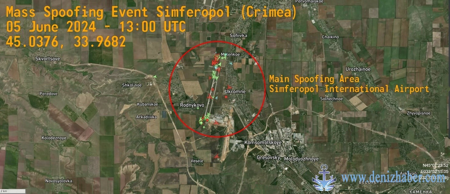 4 Haziran 2024 itibarıyla yaklaşık 50 gemi, Kırım'ın Simferopol Uluslararası Havaalanı olarak konumlarını yayınlarken, yaklaşık 30 gemi de Novorossiysk yakınlarındaki Gelendzhik Havaalanı'nda konumlarını yayınlıyor.