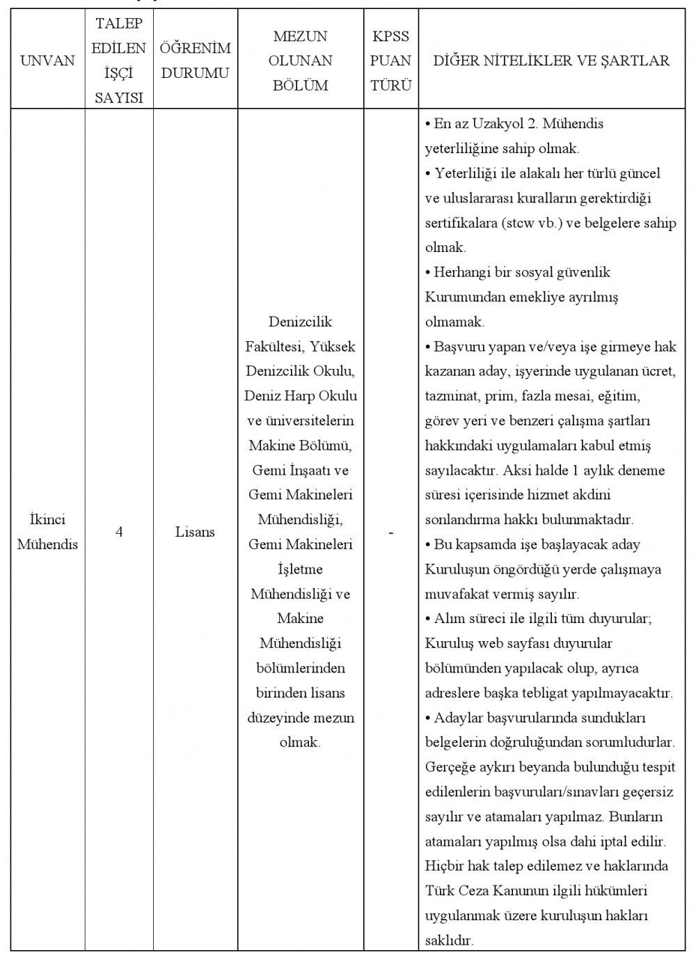 İkinci Mühendis unvan grubu için istenen nitelik ve şartlar aşağıda belirtilmiştir.