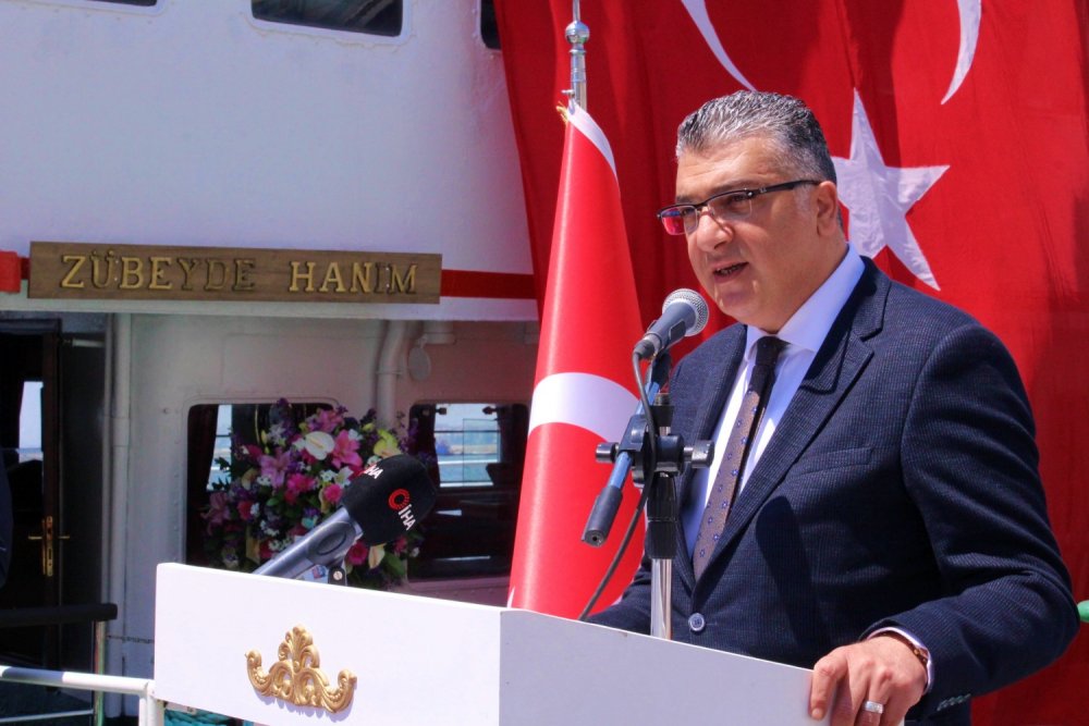 Kıyı Emniyeti Genel Müdürü Durmuş Ünivar, “Anneler Günü’nde cumhuriyetimizin kurucusu Mustafa Kemal Atatürk’ün çok değerli annesi Zübeyde Hanım’ın ismini taşıyan bu gemiyi İzmir’imizin değeri olarak yeniden kazandırıyor olmaktan duyduğum gurur ve sevinci özellikle ifade ediyorum. Deniz hayatına 1987 yılında Rumeli Kavağı ismiyle başlayan gemimiz, 2007 yılında Zübeyde Hanım ismini alarak hizmetini sürdürmüştür. Bakanlığımızın 10. Ulaştırma Şurası önerileri kapsamında 2023 denizcilik hedeflerinden olan denizcilik bilincinin geliştirilmesi amacıyla ve denizci ülke, denizci millet ilkesi çerçevesinde bir eğitim gemisine dönüştürülmüş, 10 Mart 2014 tarihi itibariyle de Kıyı Emniyeti Genel Müdürlüğümüz bünyesinde hizmete girmiştir. Yılda 60 binin üzerinde ziyaret edilen gemimizin etkinliğini artırmak ve İzmir’imize yaraşır görüntüsünü koruyabilmek adına bir yenileme çalışmasına ihtiyaç duyulmuş, 2018 aralık ayında başlayan havuzlama ve bakım projesi gemi iç dizaynının yenilendiği 4 aylık kapsamlı bir çalışma gerektirmiştir. Bu çalışmalar kapsamında ülkemizin denizcilik mirası ve değerleri tarihi objelerin sergilendiği gemimizde bir kütüphane oluşturulmuş, ülkemizin denizcilik kültürünün geliştirilmesine katkı sağlanması amaçlanmıştır” dedi.
